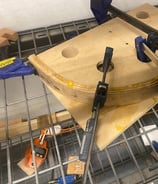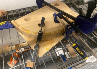Mit dem gelernten wieder in Deutschland, befinde ich mich momentan in der Phase der überarbeitung des Entwurfs, unnötige Biegungen habe ich bereits aus dem Entwurf entfernt und eine Biegehilfe für den nächsten biege ansatz Entworfen und gebaut. Als nächstes heißt es wieder, diesmal mit einer anderen Holzart, Grundschnitte Planen und schneiden, 5mm Scheiben schneiden und Dampfbiegen