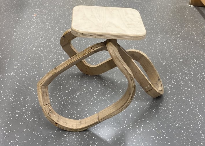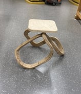 Biegen und Leimen fertig, aber es kam wie es kommen musste und einige der Hölzer sind beim biegen gebrochen. Hat Zeit und Geld gekostet, aber am Ende habe ich einen Prototypen geschaffen der meinen Entwurf getroffen hat, zwar mit ecken und kanten und ungenauigkeit, aber für meine ersten Schritte im Holz biegen durchaus akzeptabel. Der Hocker hat gehalten, man konnte drauf sitzen und es ist nichts kaputt gegangen.