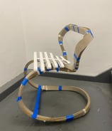 Daraufhin entwickelte sich der Entwurf weiter in den hier gezeigten hocker. Besonders schwierig war hierbei die Form so zu gestalten das sie sich relativ einfach biegen lässt als auch eine Möbisuschleife bildet welche als Inspiration für dieses Projekt gedient hat.